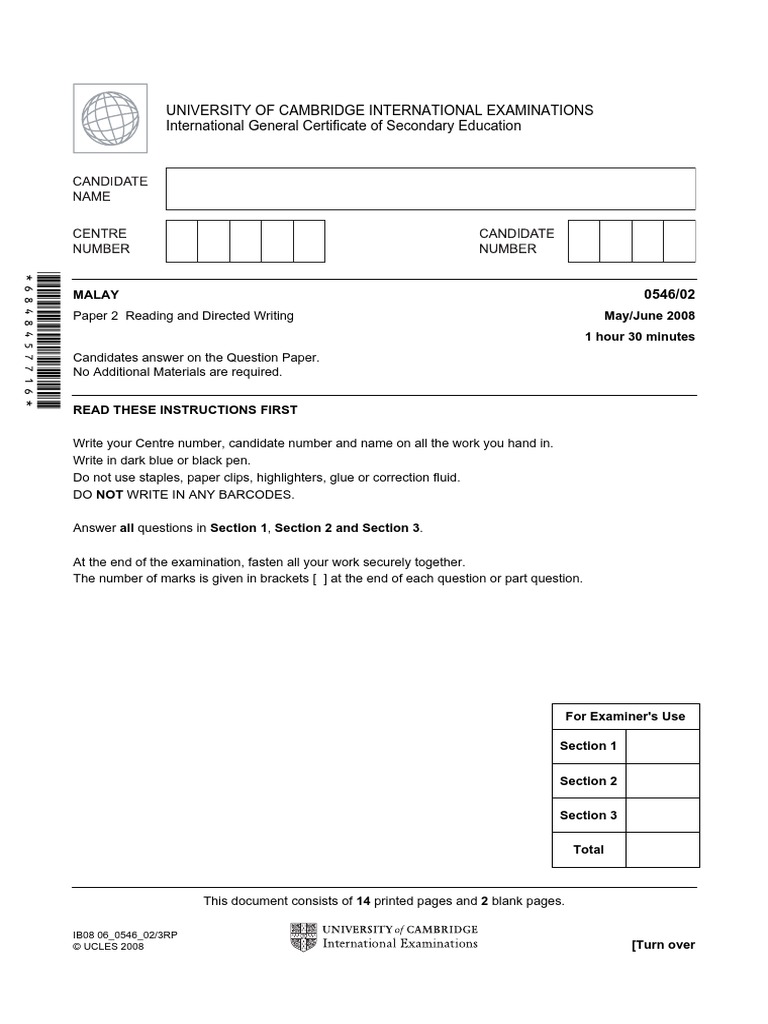 Cambridge Igcse Malay Foreign Language Paper 2 Summer 2008 Pdf